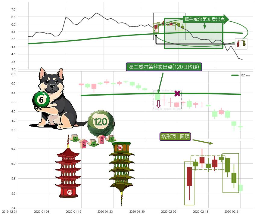 ➣ 收盘价(2020-01-13: 6.48 )→回踩→第一根k线低点(2020-01-07: 6.15 )