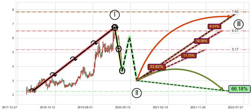 ➣ 循环浪继续向上【平均值】位置(2022-03-24, 6.51),匹配聚类样本比例47.48%, 可能性概率16.06%
