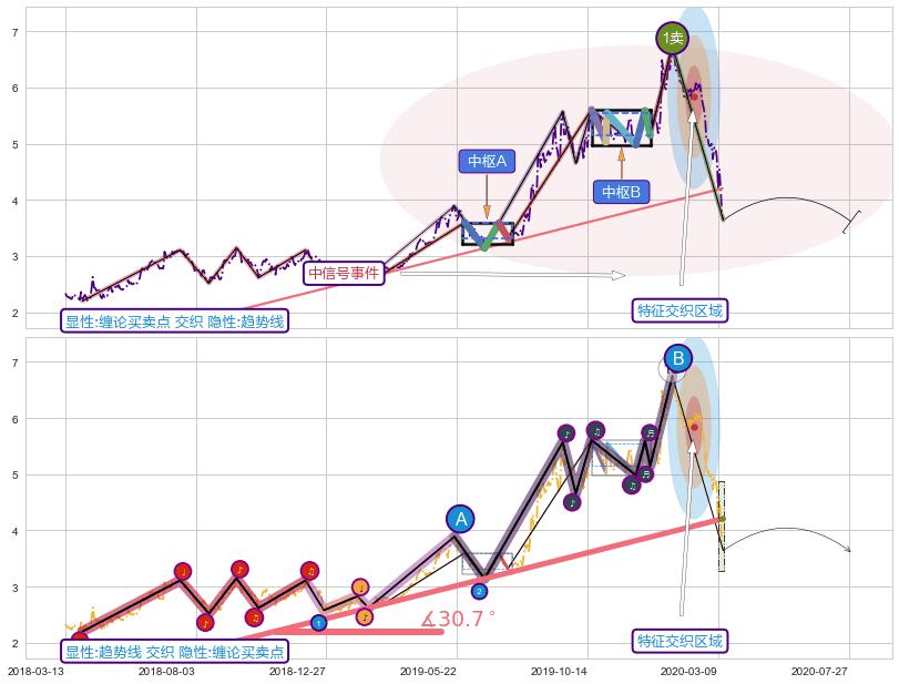 从2018-04-02至2020-03-12,共包含491个交易日,阶段股价上涨74.83%,阶段股价变动位移路程比: 1 : 14,上涨趋势角度: 30.7