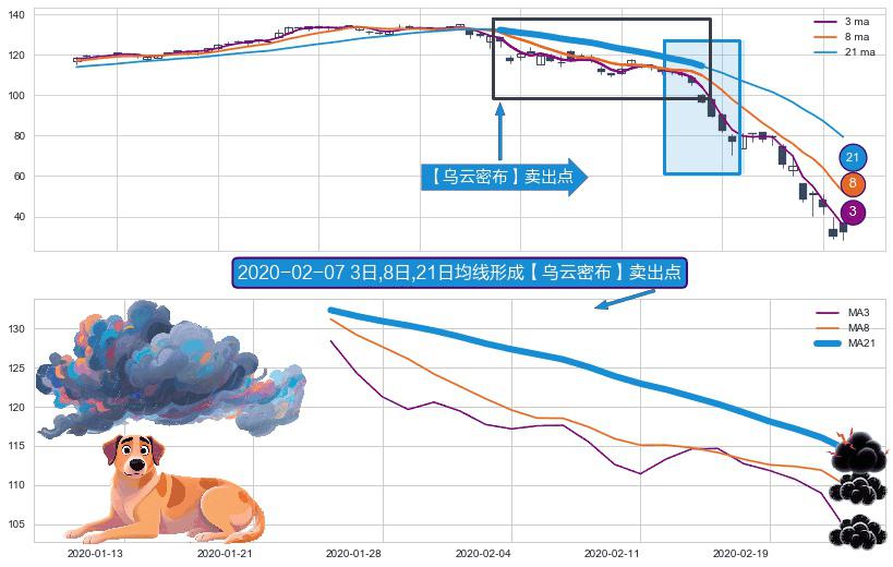 形态多维评估: ⚀ 2020-01-24日-2020-02-24日显现 3日-8日-21日均线 【乌云密布】卖出点 看空信号,后市看跌,卖出