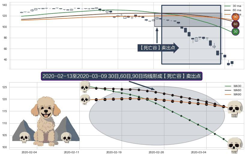 形态多维评估: ⚀ 2020-02-14-日至2020-03-09-日显现 30日-60日-90日均线 【死亡谷】卖出点 看空信号,后市看跌,卖出