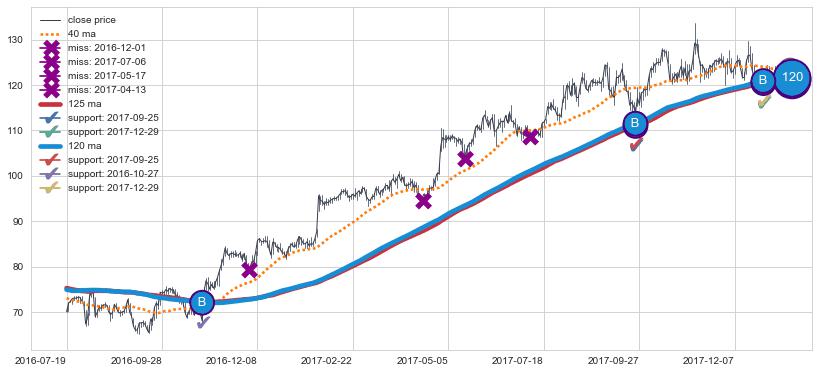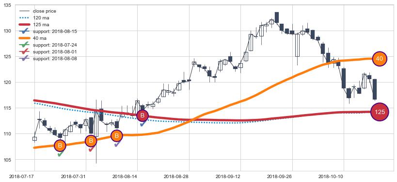 上涨趋势2018-07-17-2018-10-18,均线40, 125确认关键支撑4处