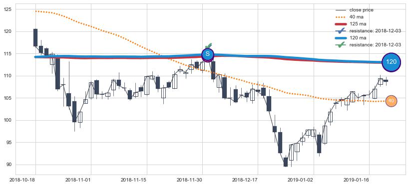 下跌趋势2018-10-18-2019-01-22,均线120, 125确认关键阻力1处