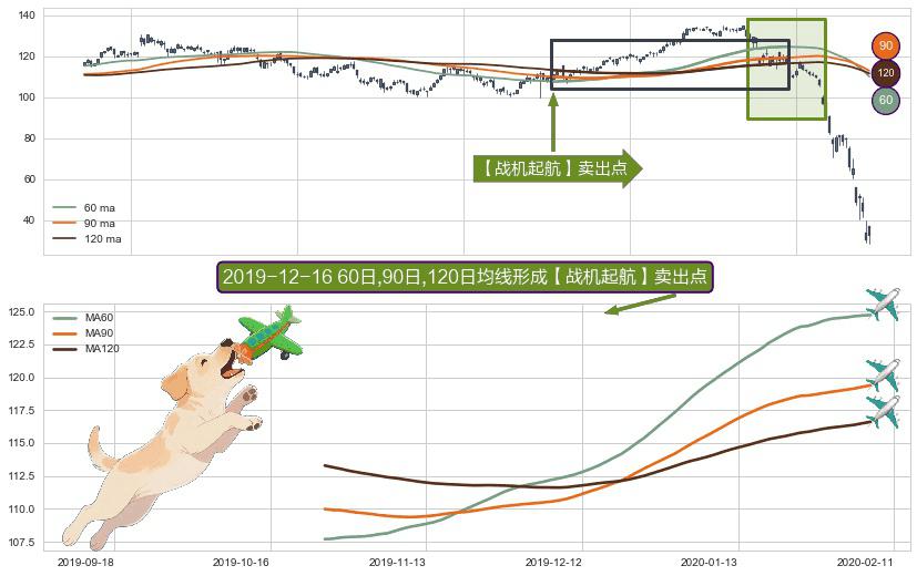 形态多维评估: ⚀ 2019-10-25日-2020-02-06日显现 60日-90日-120日均线 【战机起航】卖出点 看空信号,后市看跌,卖出