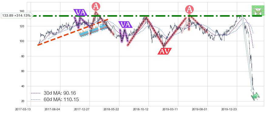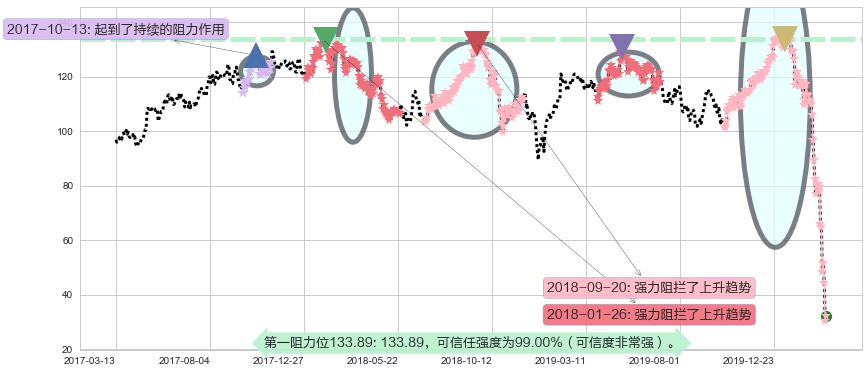 ♘ 阻力价格位133.89,可信任强度99.00%,距离最后交易2020-03-13形成的收盘价格32.33相差 +314.13%