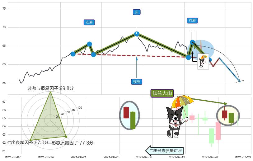 ➣ 【未确认突破,预测即将形成突破】头肩顶起点:2021-03-23, 预测突破点:2021-08-02,形态共92交易日