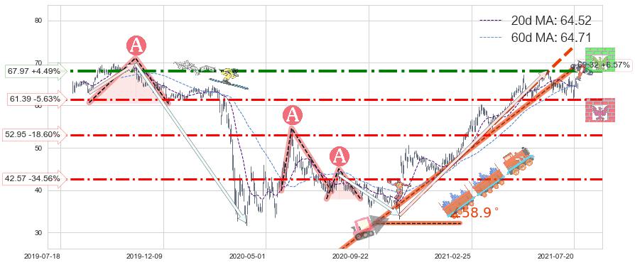 ➢ 【仅预测突破】最后价格:65.05与预测突破价格:61.17→【空间中等】后续最小【反转】第一目标价格→(2021-08-23: 55.27 )