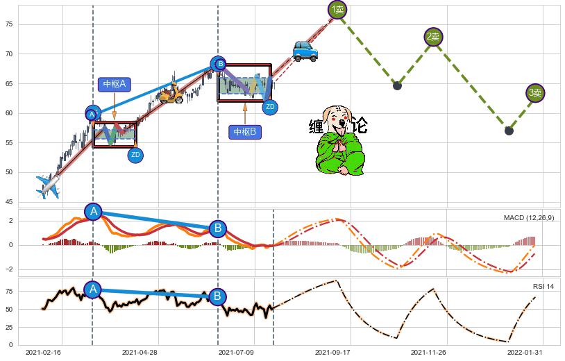 ➣ 【未完成】缠论 起点:2021-02-03, 完成第1中枢A,完成第2中枢B,到达2021-07-23