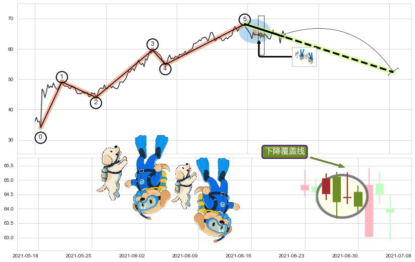 ➢ 最后的上涨趋势2020-10-28至2021-06-17:存在破位迹象,后续小调整或者反转下跌
