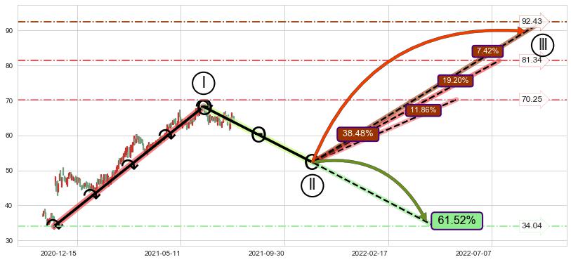 ➣ AI预测: 假定反转启动后, 第❸目标位置(2021-12-02, 68.20)