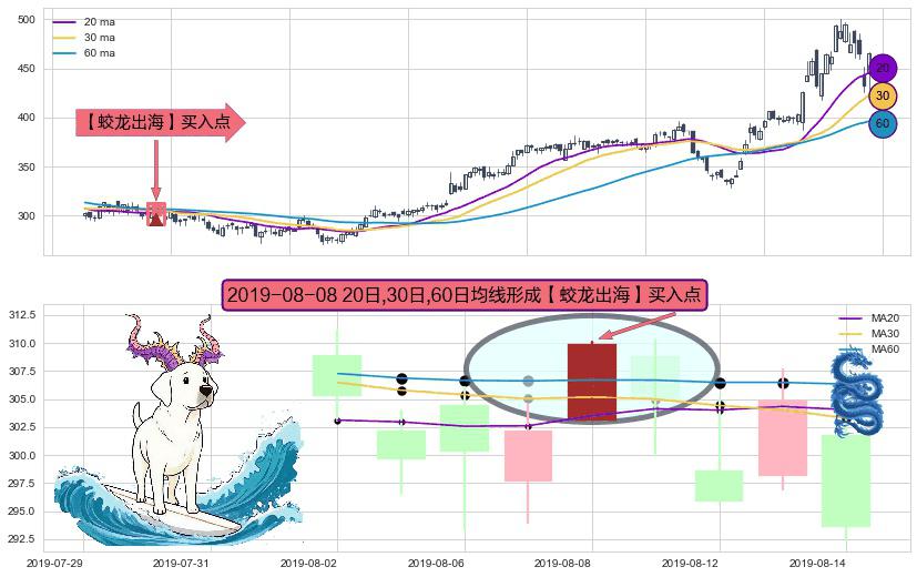 形态多维评估: ⚀ 2019-08-08日显现 20日-30日-60日均线 【蛟龙出海】买入点 看多信号,后市看涨,买入