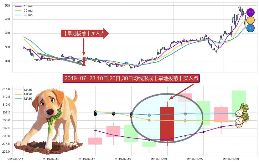 形态多维评估: ⚀ 2019-07-23日显现 10日-20日-30日均线 【旱地拔葱】买入点 看多信号,后市看涨,买入