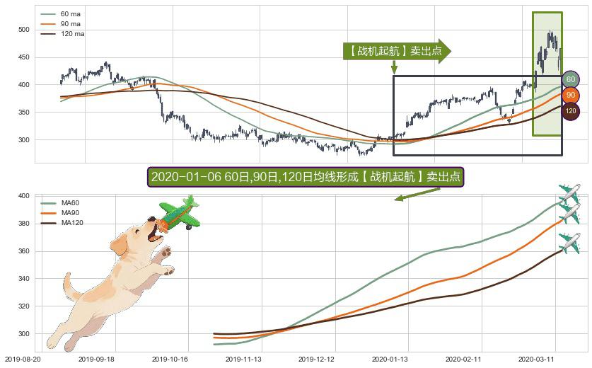 形态多维评估: ⚀ 2019-10-25日-2020-03-13日显现 60日-90日-120日均线 【战机起航】卖出点 看空信号,后市看跌,卖出