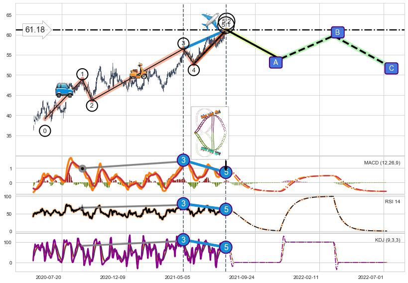➣ 5.1: 预测当前第5浪位置(2021-07-23, 61.12),仍然有上升空间