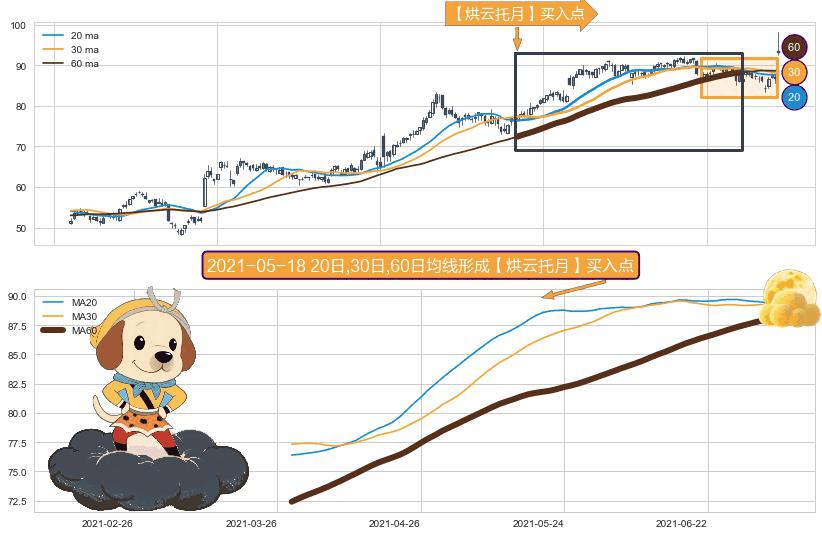 ⚀ 2021-03-30日-2021-07-07日显现 20日-30日-60日均线 【烘云托月】买入点 看多信号,后市看涨,买入