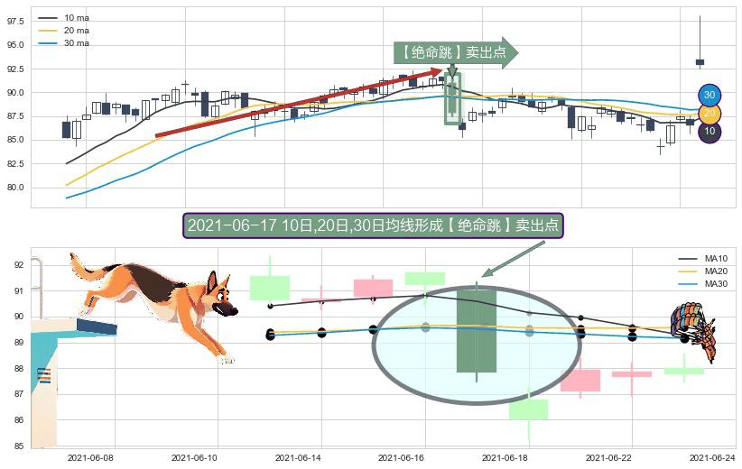 ⚀ 2021-06-17日显现 10日-20日-30日均线 【绝命跳】卖出点 看空信号,后市看跌,卖出
