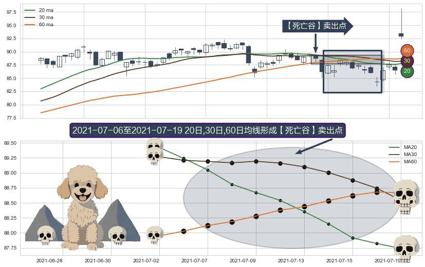 ⚀ 2021-07-07-日至2021-07-19-日显现 20日-30日-60日均线 【死亡谷】卖出点 看空信号,后市看跌,卖出