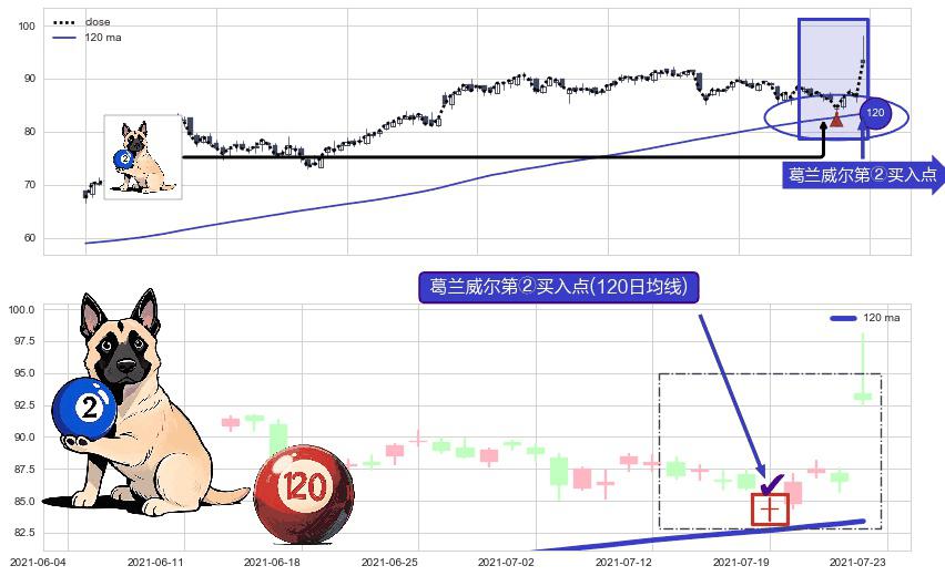 ⚀ 2021-07-19-日显现 葛兰威尔均线 120日均线 第②买入点 上升趋势的中继信号,后市看涨,买进信号