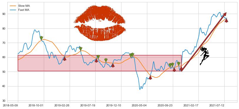 ⚅ 买点向上突破均线后,价格不断向上抬高,不断远离均线,气势如虹,均线强斥力助涨