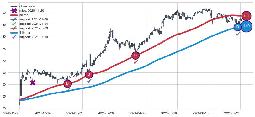 ⚄ 价格在均线获取支撑后已再次向上反弹了【较长】距离, 第②买入点 支撑效果得到【初步确认】