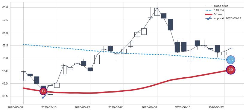 ⚂ 2020-10-23-日均线向下破位,2020-11-09-日重新上穿突破均线,均线支撑再次生效
