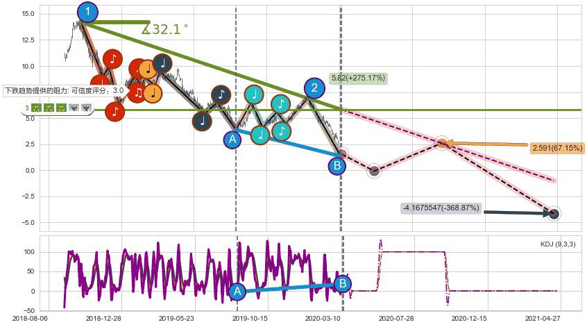 从2018-10-09至2020-03-13,共包含359个交易日,阶段股价下跌-174.75%,阶段股价变动位移路程比: 1 : 6,下跌趋势角度: 32.1