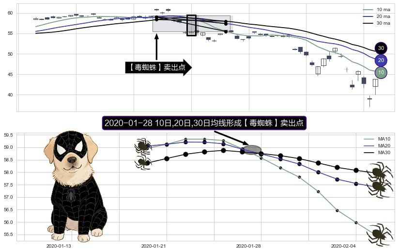 形态多维评估: ⚀ 2020-01-28日显现 10日-20日-30日均线 【毒蜘蛛】卖出点 看空信号,后市看跌,卖出