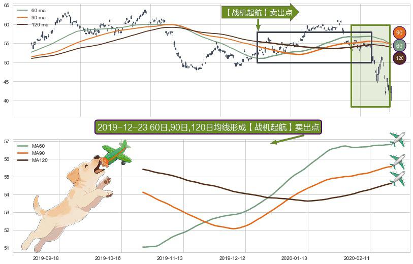 形态多维评估: ⚀ 2019-10-25日-2020-02-21日显现 60日-90日-120日均线 【战机起航】卖出点 看空信号,后市看跌,卖出