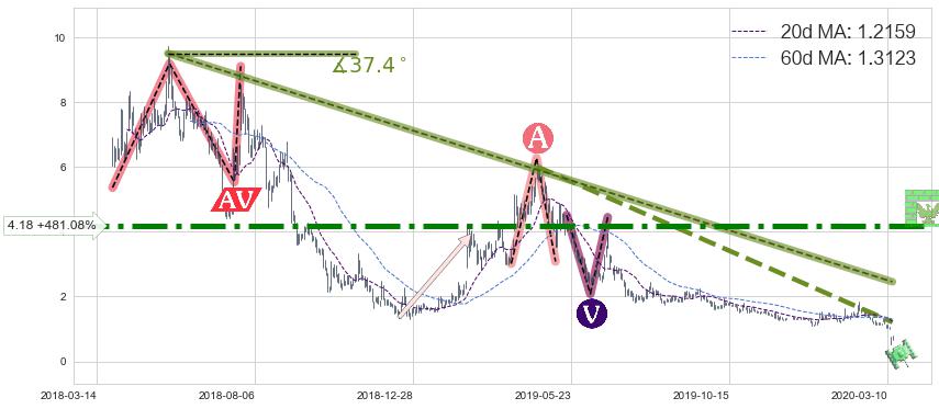 ➣ 【仅预测突破】最后价格:0.7200与预测突破价格:1.3471→【空间较大】后续最小【整理】第一目标价格→(2020-06-05: 4.51 )