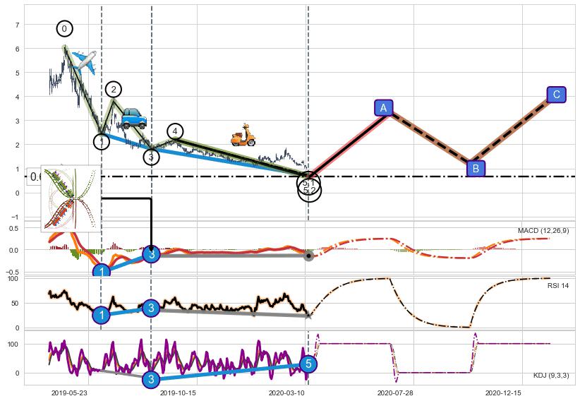 ➣ 5.1: 预测当前第5浪位置(2020-03-13, 0.7200),仍然有下跌空间