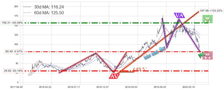 ♘ 阻力价格位156.31,可信任强度80.26%,距离最后交易2020-03-13形成的收盘价格80.95相差 +93.09%