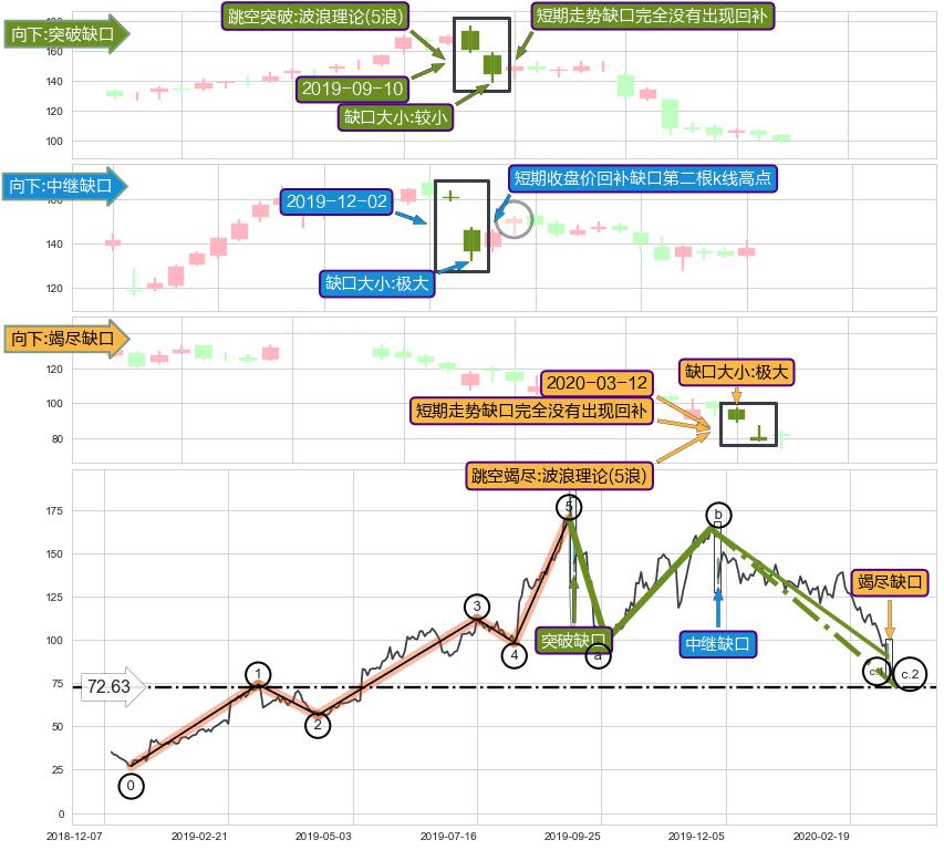 ➢ 2020-03-12形成:向下跳空【竭尽】缺口
