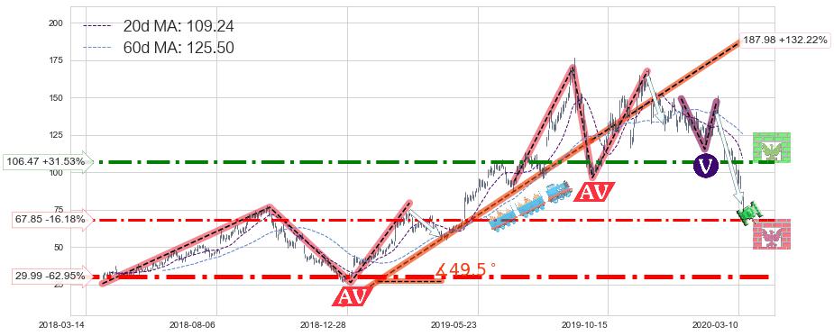 ♘ 支撑价格位67.85,可信任强度63.36%,距离最后交易2020-03-13形成的收盘价格80.95相差 -16.18%
