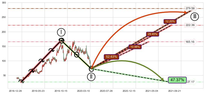 ➣ 循环浪继续向上【平均值】位置(2021-07-23, 222.36),匹配聚类样本比例55.97%, 可能性概率29.45%