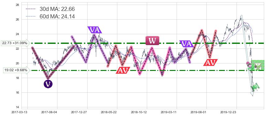➣ 【已达成】最小【整理】第一目标价格→(2020-03-09: 18.72 ), 后续继续【整理】下跌动力微弱,下跌较小