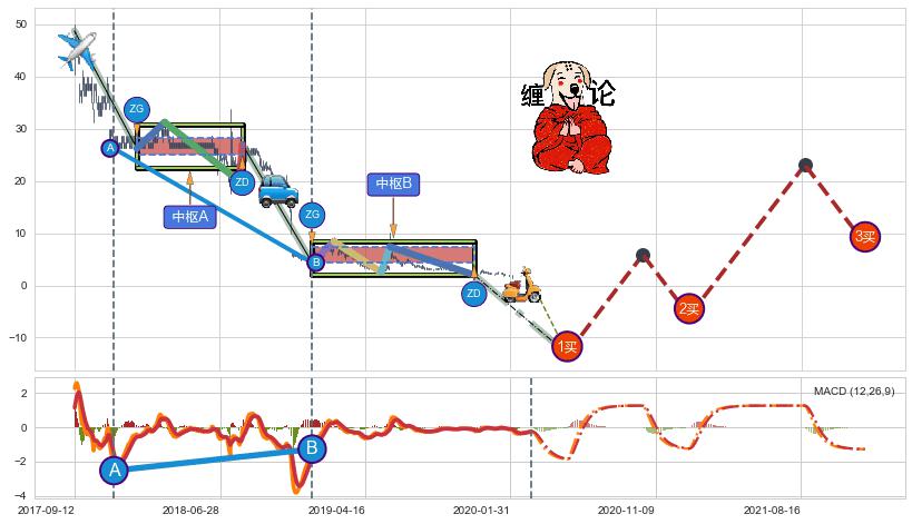➣ 【未完成】缠论 起点:2017-09-12, 完成第1中枢A,完成第2中枢B,到达2020-03-13