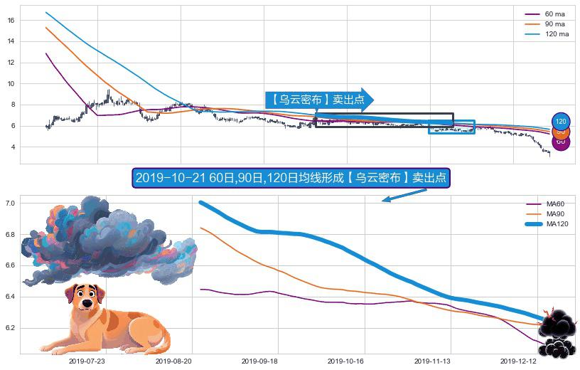 形态多维评估: ⚀ 2019-08-22日-2019-12-17日显现 60日-90日-120日均线 【乌云密布】卖出点 看空信号,后市看跌,卖出
