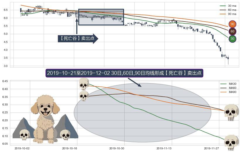 形态多维评估: ⚀ 2019-10-22-日至2019-12-02-日显现 30日-60日-90日均线 【死亡谷】卖出点 看空信号,后市看跌,卖出