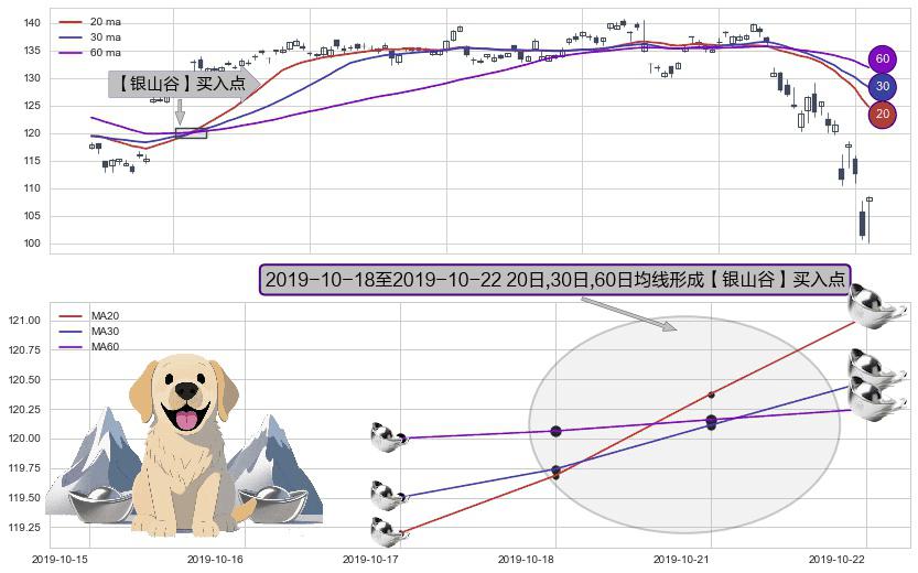 形态多维评估: ⚀ 2019-10-21-日至2019-10-22-日显现 20日-30日-60日均线 【银山谷】买入点 看多信号,后市看涨,买入