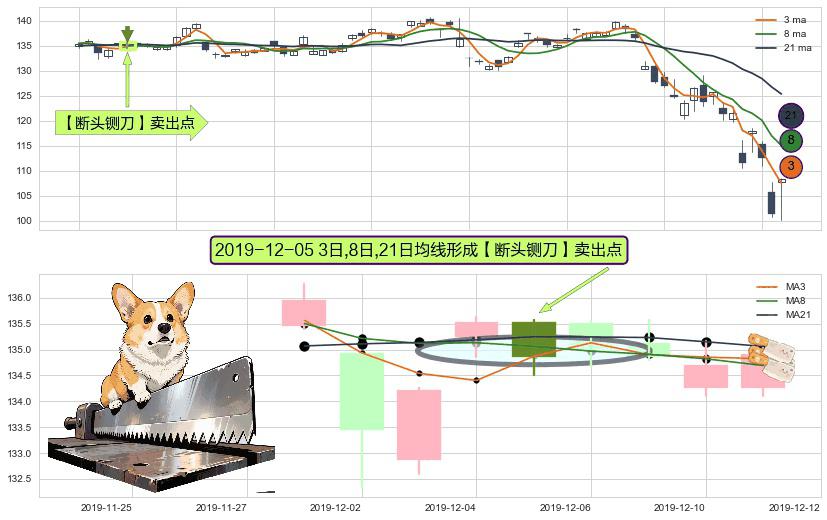 形态多维评估: ⚀ 2019-12-05日显现 3日-8日-21日均线 【断头铡刀】卖出点 看空信号,后市看跌,卖出