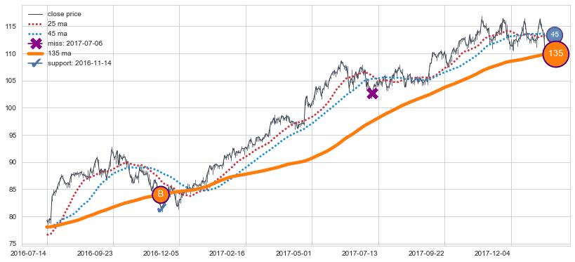 上涨趋势2016-07-14-2018-01-11,均线135确认关键支撑1处