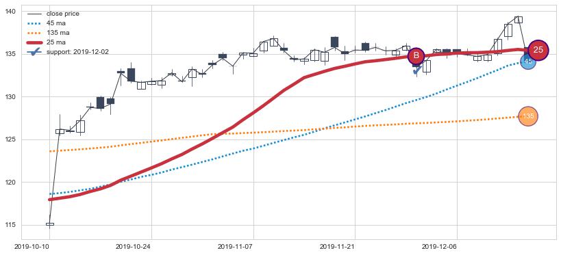上涨趋势2019-10-10-2019-12-17,均线25确认关键支撑1处