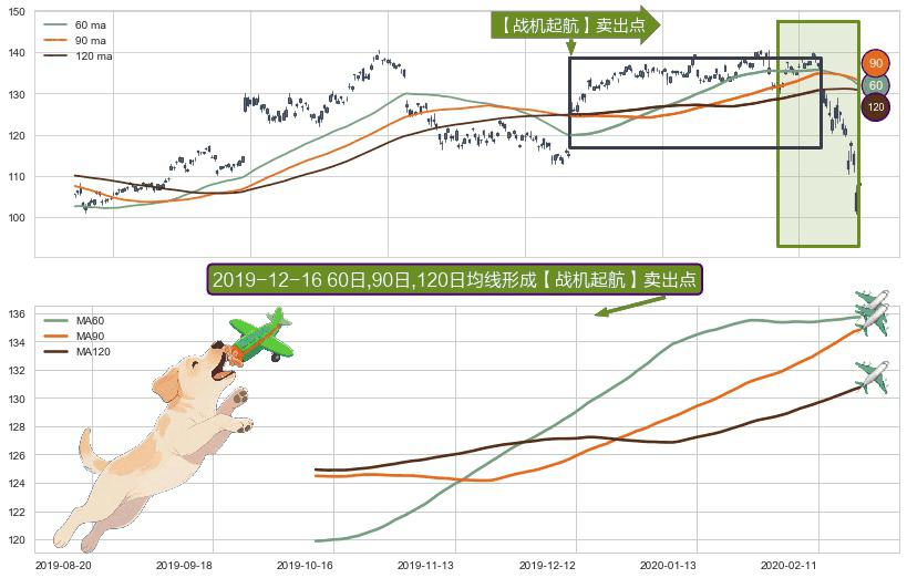 形态多维评估: ⚀ 2019-10-11日-2020-02-21日显现 60日-90日-120日均线 【战机起航】卖出点 看空信号,后市看跌,卖出
