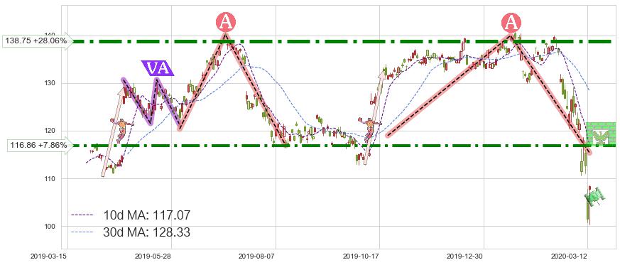 ♘ 阻力价格位138.75,可信任强度94.74%,距离最后交易2020-03-13形成的收盘价格108.35相差 +28.06%