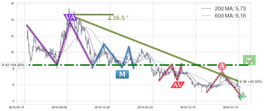 ♘ 阻力价格位8.42,可信任强度95.83%,距离最后交易2020-03-13形成的收盘价格5.13相差 +64.22%