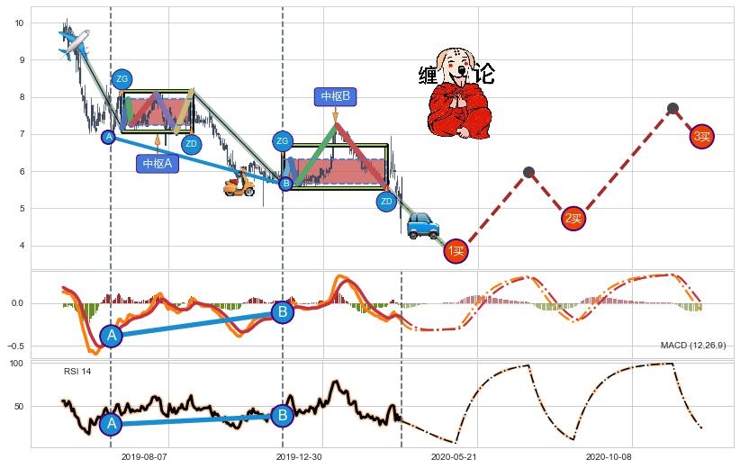 ➣ 【未完成】缠论 起点:2019-05-08, 完成第1中枢A,完成第2中枢B,到达2020-03-13