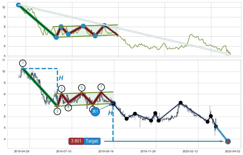➣ 最小中继整理跌幅→𝐇: 3.360 (𝐇旗杆的长度:旗杆起点→顶点)