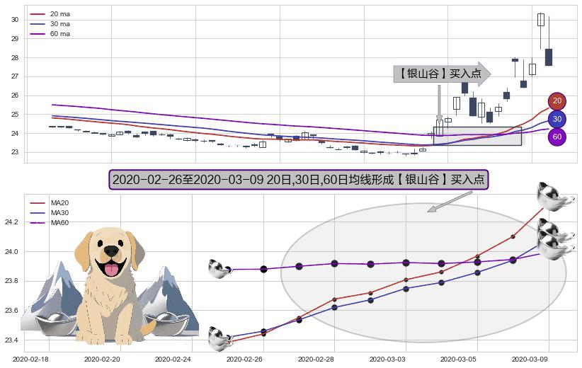⚀ 2020-02-27-日至2020-03-09-日显现 20日-30日-60日均线 【银山谷】买入点 看多信号,后市看涨,买入