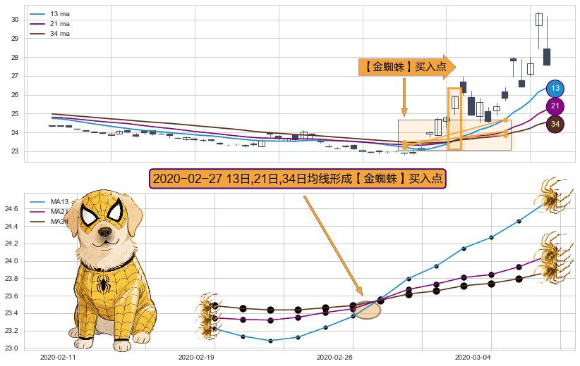 ⚀ 2020-02-27日显现 13日-21日-34日均线 【金蜘蛛】买入点 看多信号,后市看涨,买入