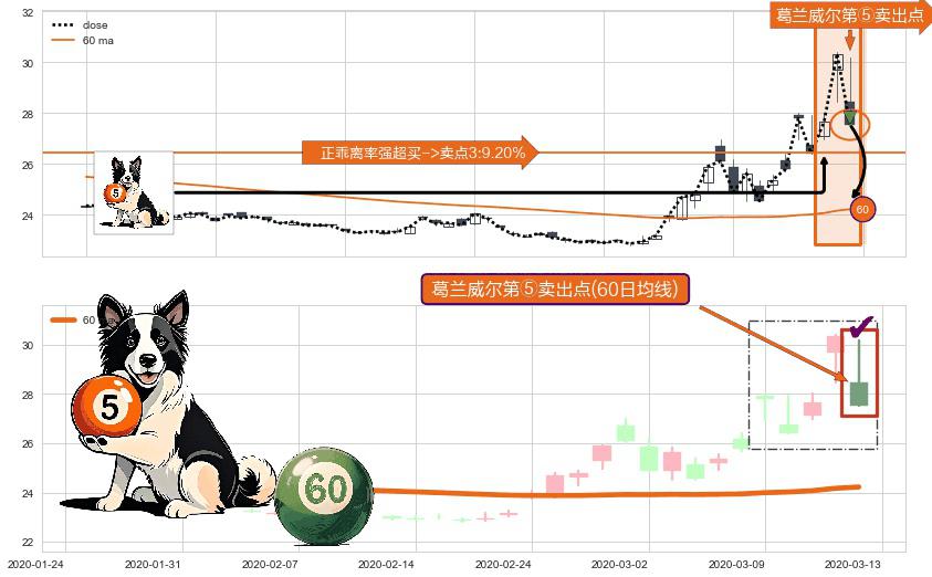 ⚀ 2020-03-13-日显现 葛兰威尔均线 60日均线 第⑤卖出点 上升趋势均值回复的短线回落信号,后市看跌,卖出信号